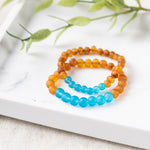 Adults | Aqua Sea Glass + Raw Cognac Amber Bracelet